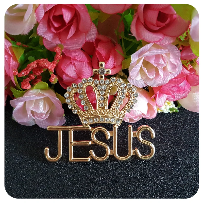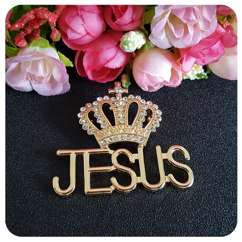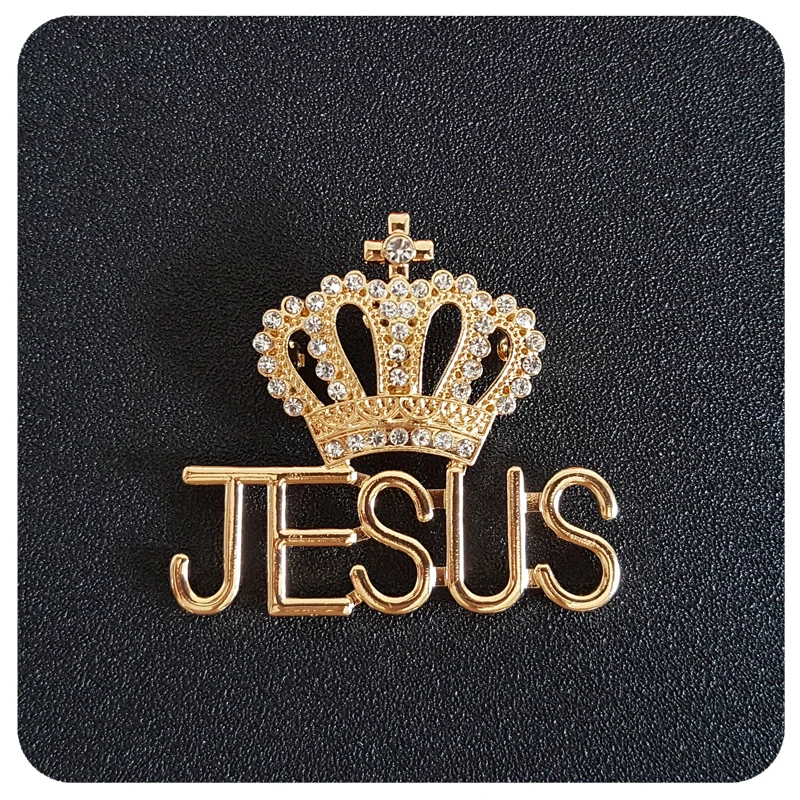 Goldfarbene Jesus-Brosche mit einer Krone auf der Oberseite, Party, Büro, Brosche, Geschenke
