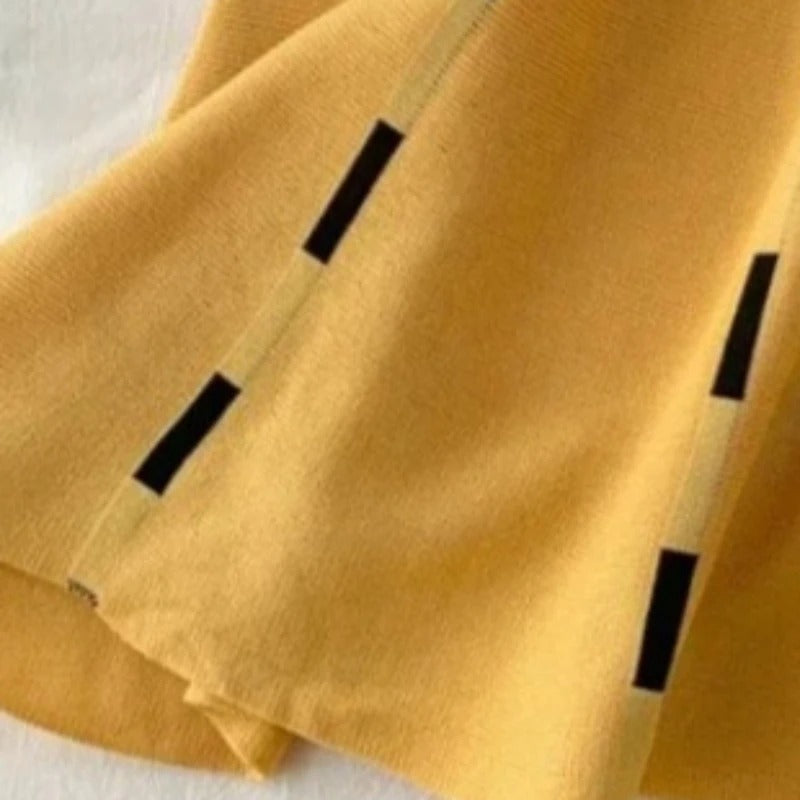 Button Front Knit Sweater Dress Women's Contrast Strap V-Neck A-Line Midi Skater Dress Casual Summer Daily Party Knitted Dress