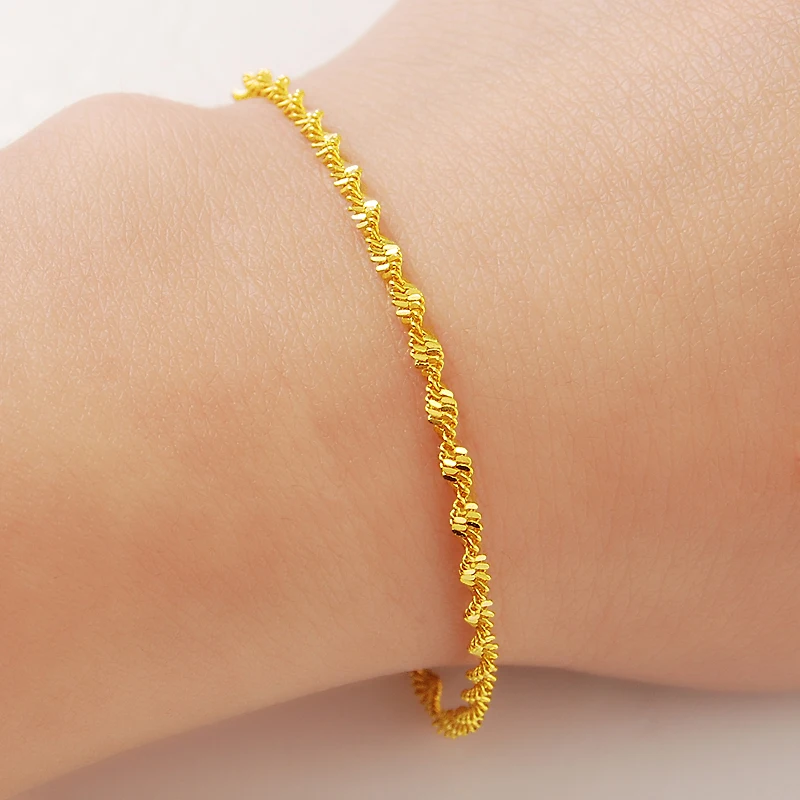 Pulsera de cadena con ondas de agua de 2 mm en color oro puro, venta al por mayor, joyería original chapada en oro para mujer.