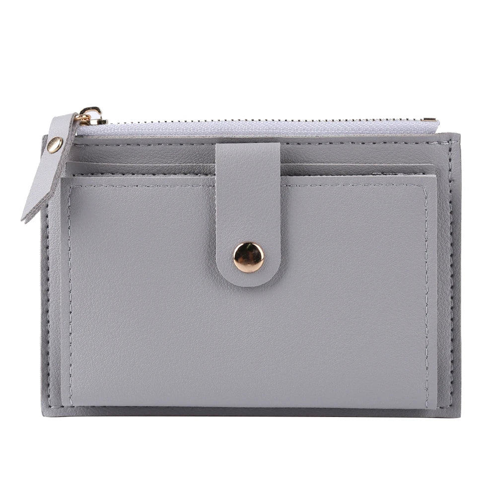 Cartera pequeña de piel sintética con múltiples ranuras y cremallera para mujer, color liso