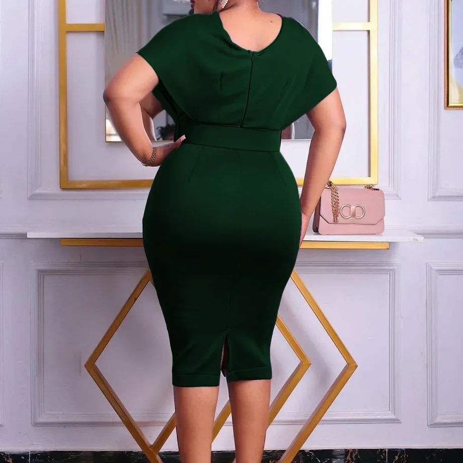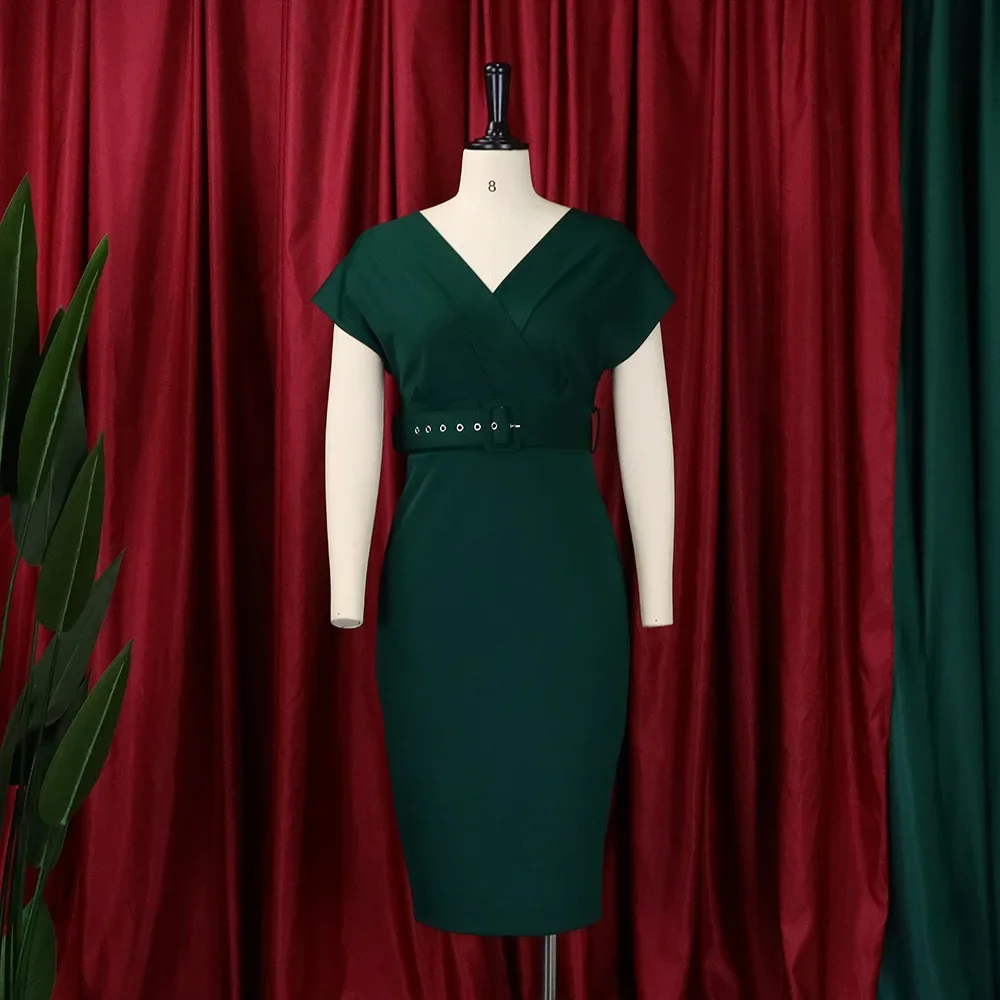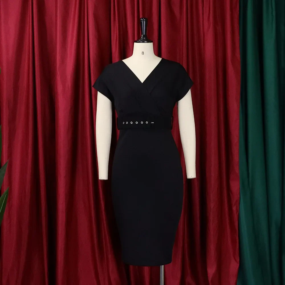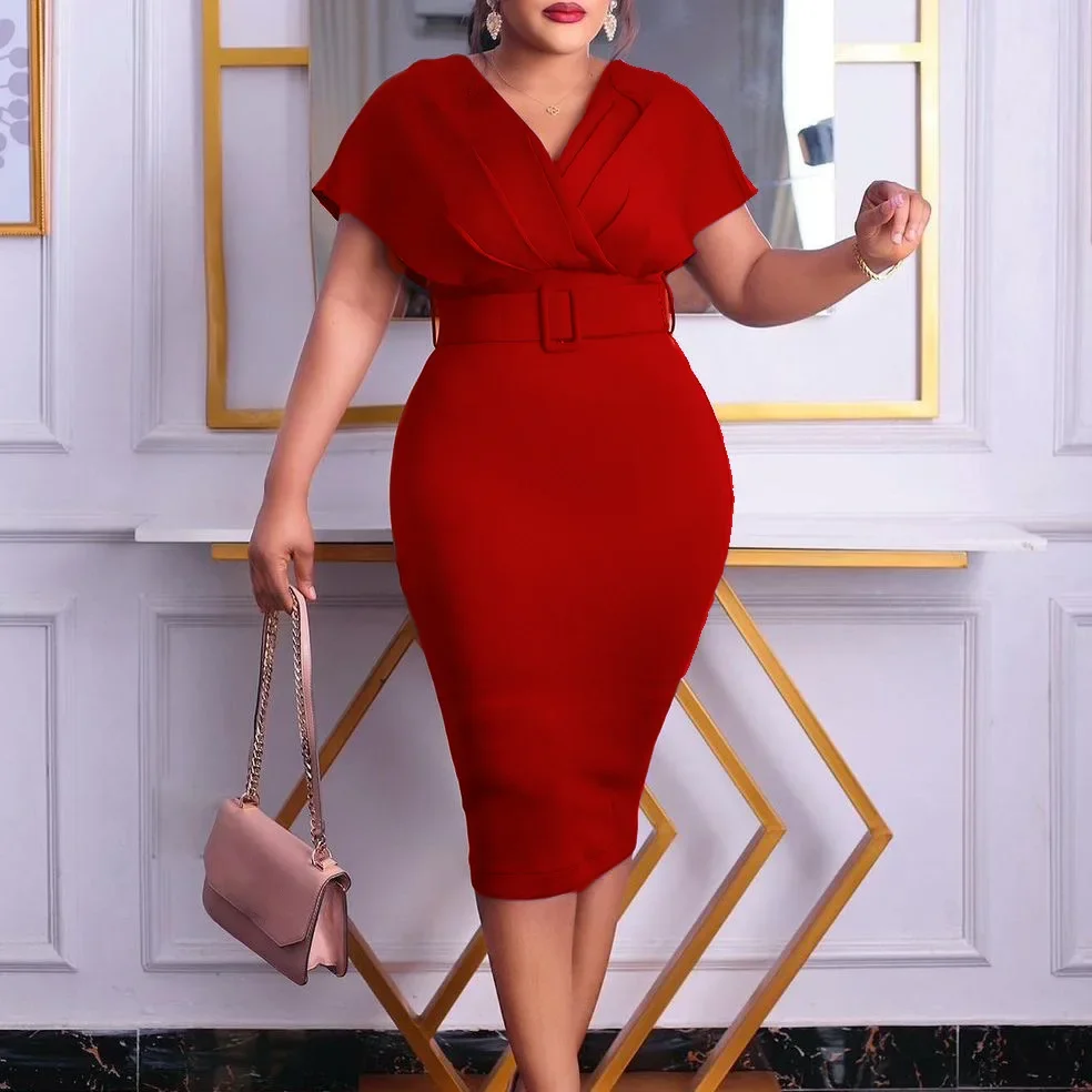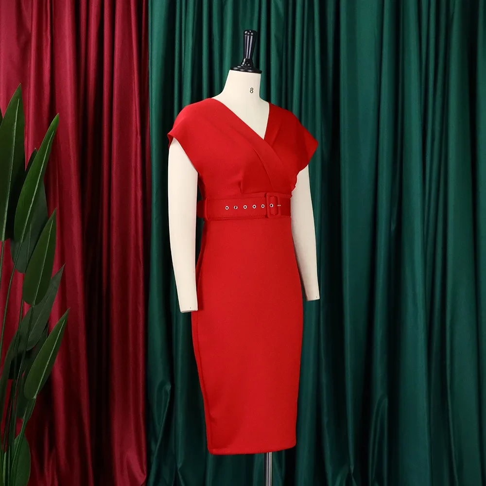 new arrival African women clothing hot sale solid color Deep v neck bodycon dress slim sexy pencil dresses OL style