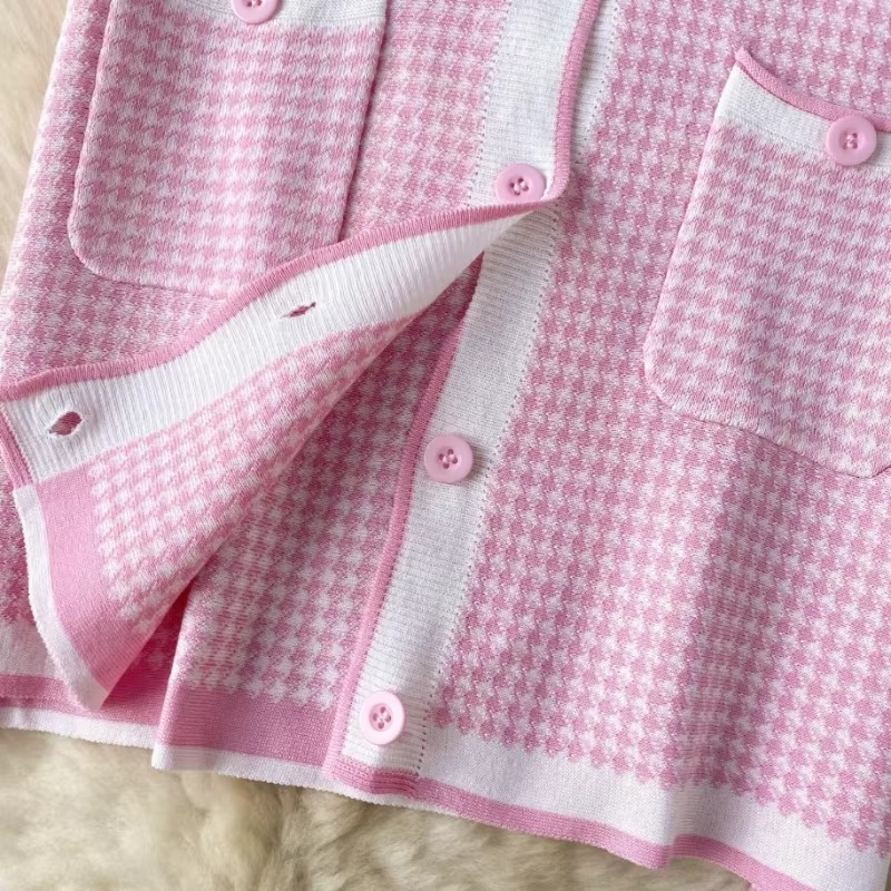 Women's Pink Gingham Sundress Sleeveless Round Neck Button Stretchy Knit Bodycon Mini Dress Elegant Party Clubwear Dress Outfits4 sold