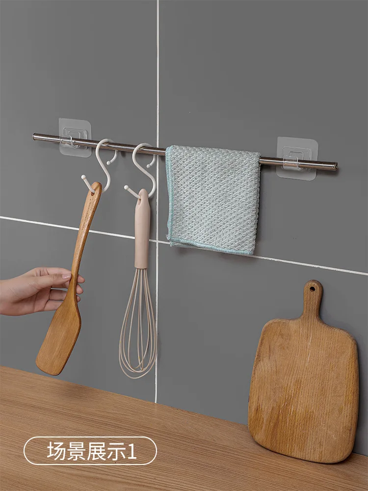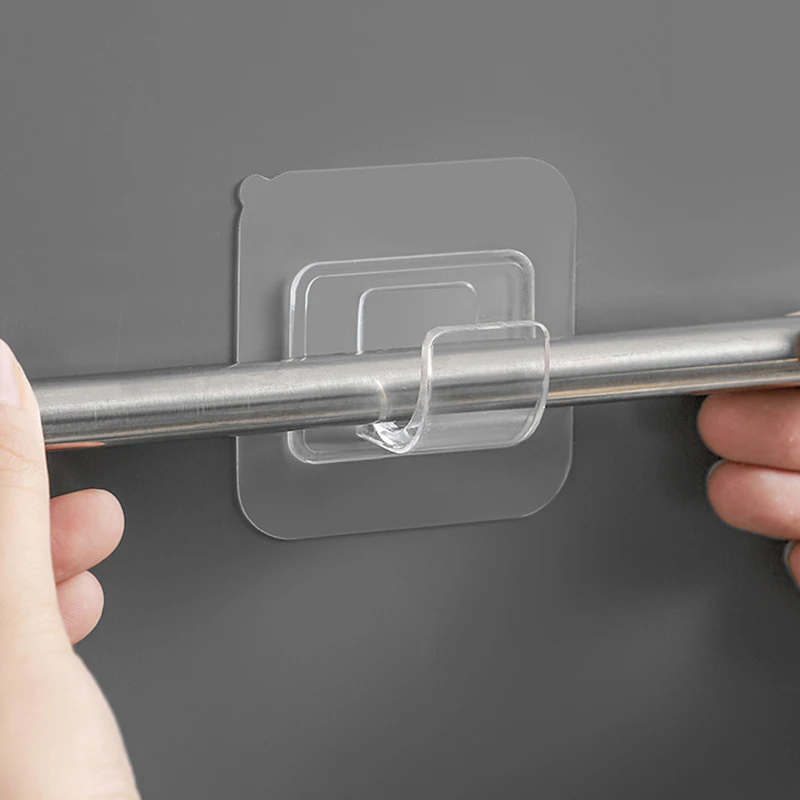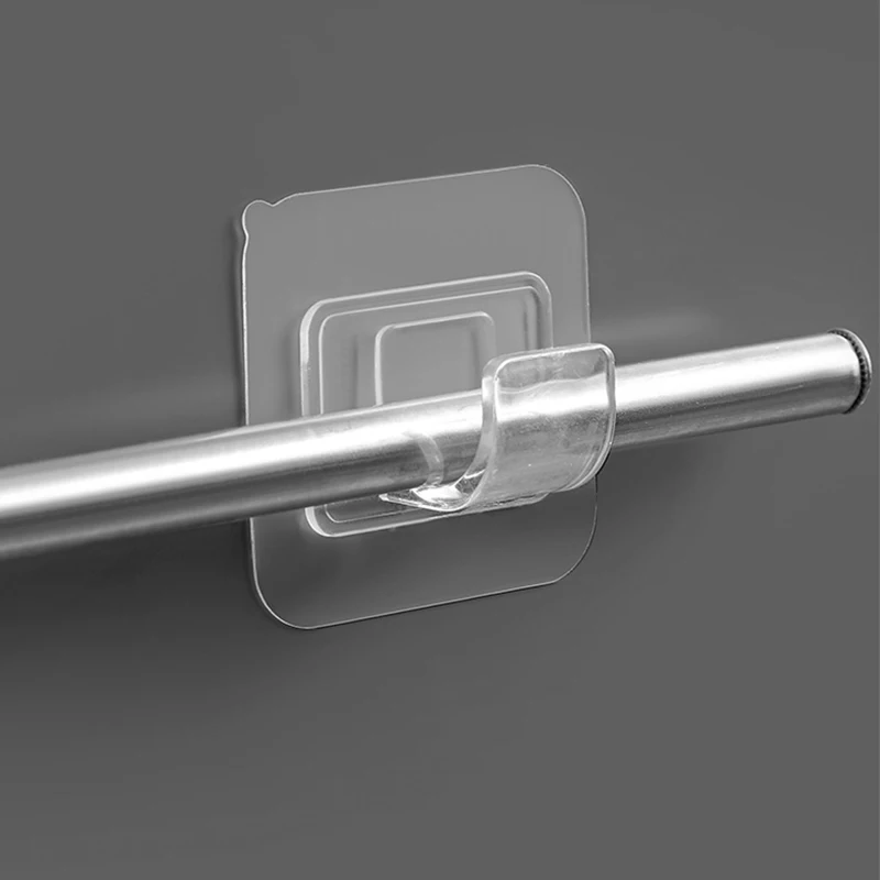 Strong Curtain Rod Bracket Holders Hooks Self-adhesive Adjustable Wall Curtain Fixed Clip Hanging Rack Hook Bathroom Accessories